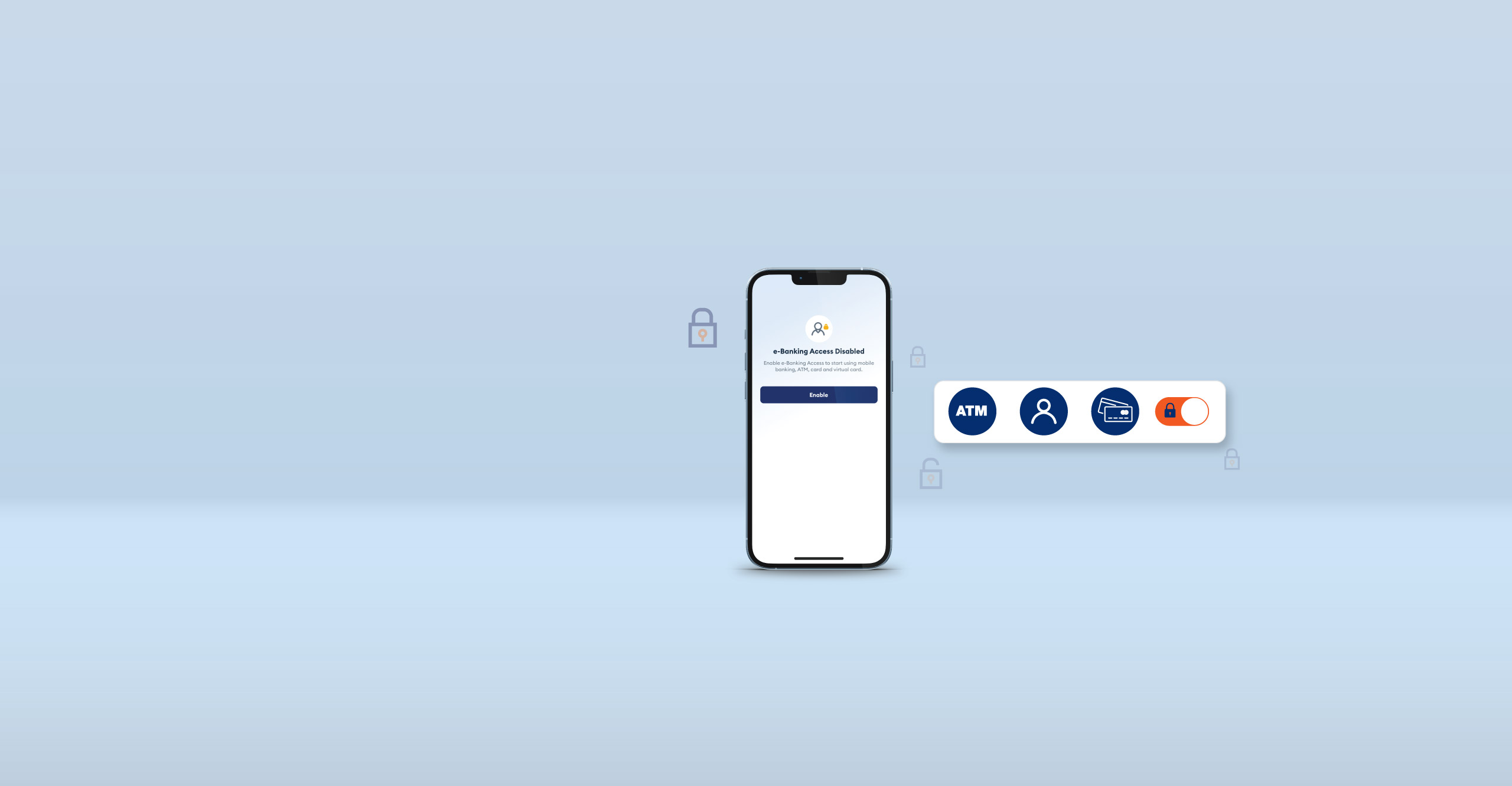 E-Banking Access is available on Phillip Mobile, allowing you to temporarily disable your e-Banking services by yourself, which deactivates your Mobile Banking, ATM Cards, Virtual Card and other online transactions in case of emergency. When your account is no longer at risk you can quickly enable e-Banking Access again.