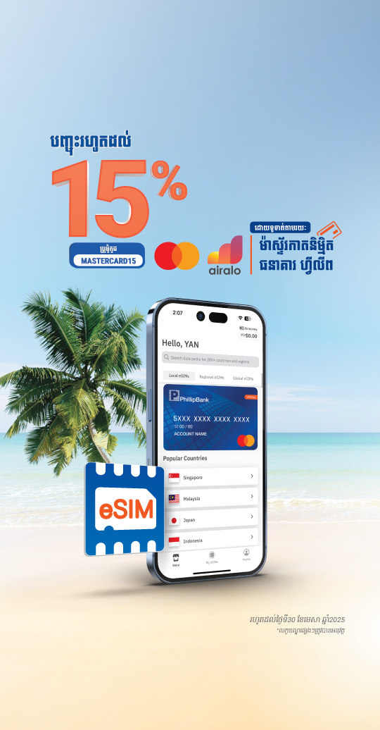 ទទួលបានកាត អេធីអឹម សេវាអាទិភាព ហ្វីលីព ដែលបង្ហាញយ៉ាងច្បាស់ថា លោកអ្នកជាអតិថិជន VIP របស់ធនាគារ